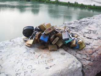 On apprend dans l'article Des cadenas d’amour envahissants sur le Pont des Arts qu'ils symbolisent l'amour éternel. C'est mignon comme ça au premier abord, mais si tous les amoureux s'y mettent, les lieux symboliques vont finir par étouffer. Un peu comme la façade et l'entrée de la maison de Juliette, toujours à Vérone, qui est massacrée de graffiti d'amoureux qui s'imaginent en Roméo transit, sans parler du sein de la statut de la belle, qui soit disant porte chance[1].